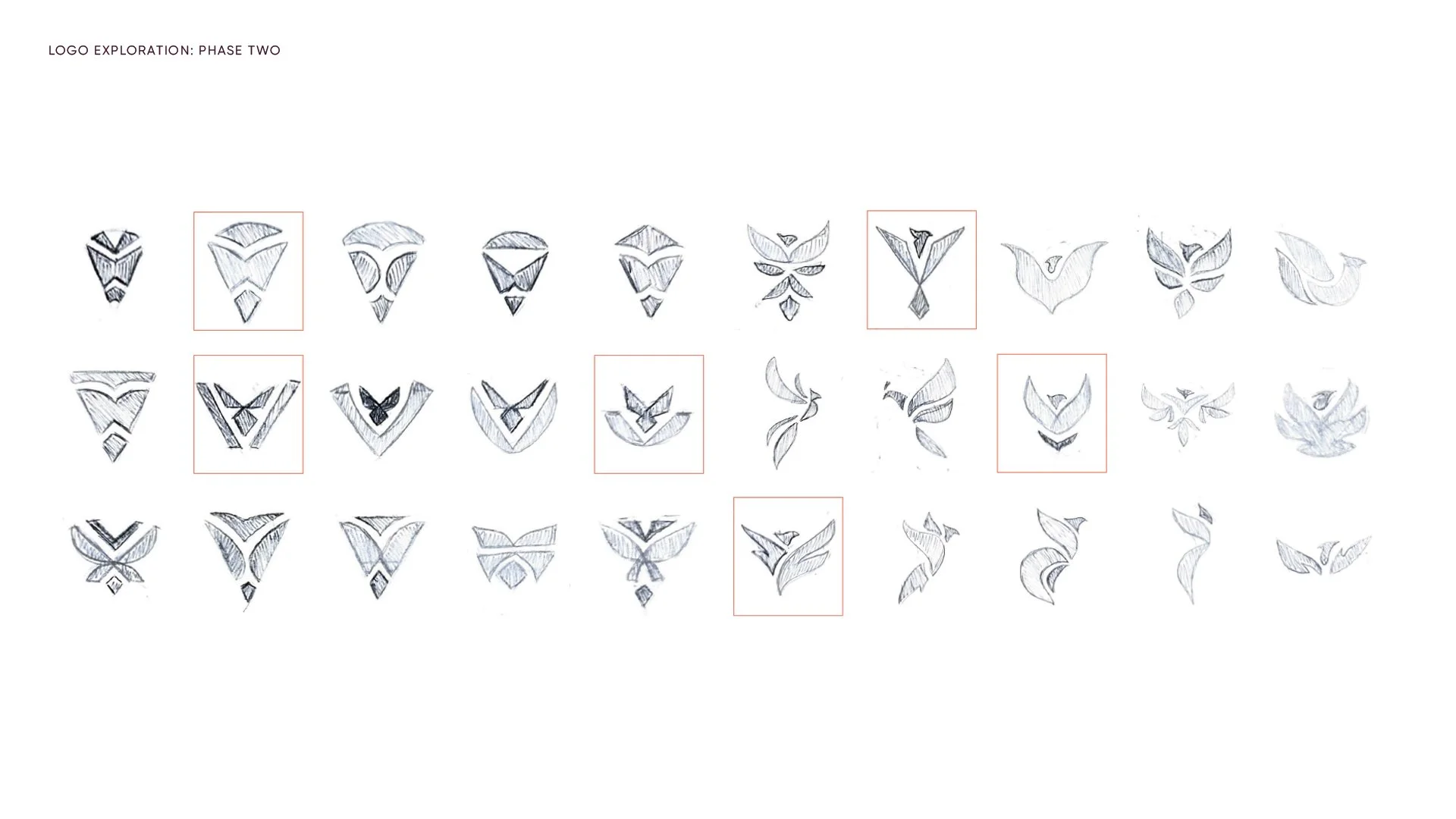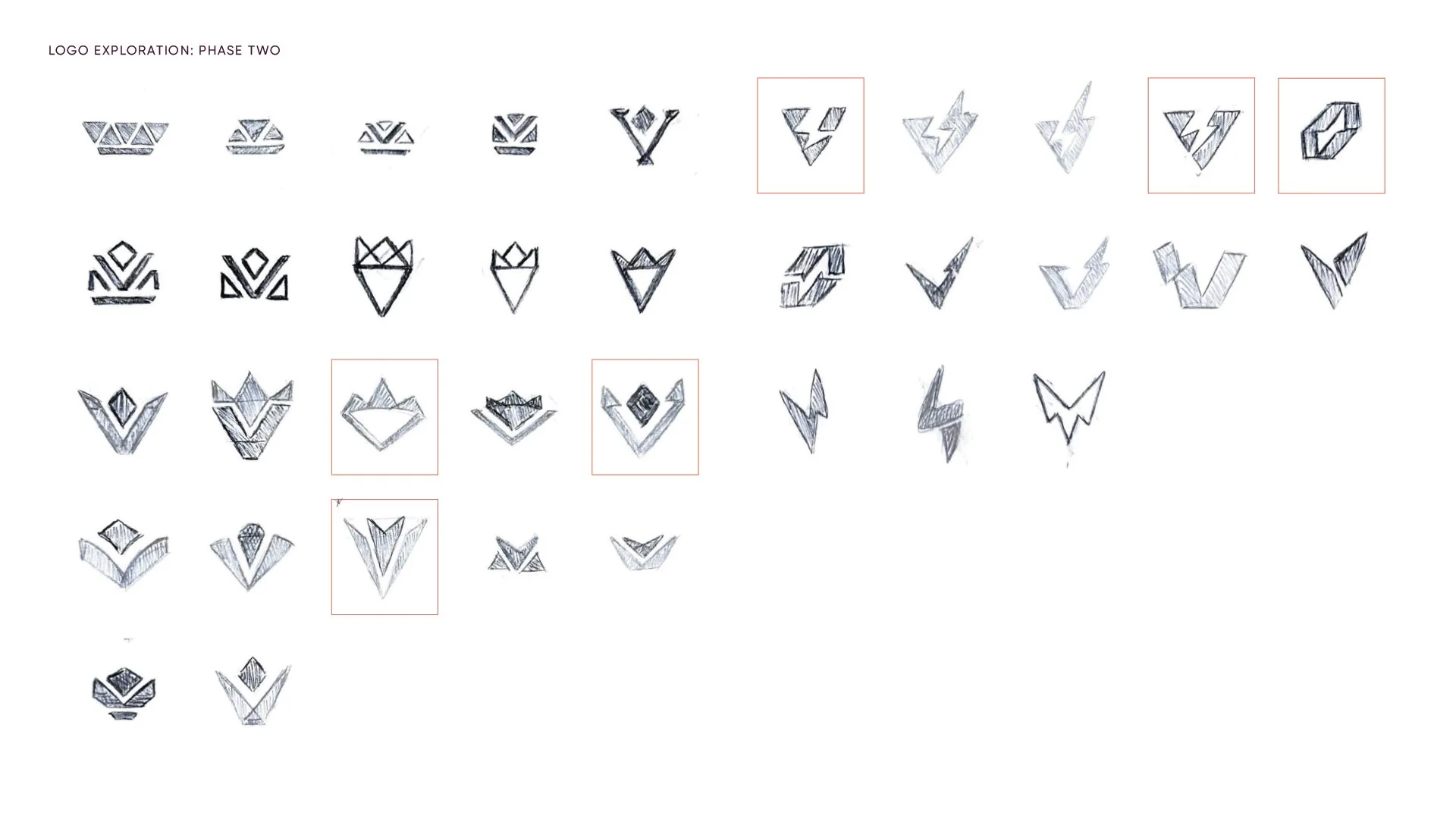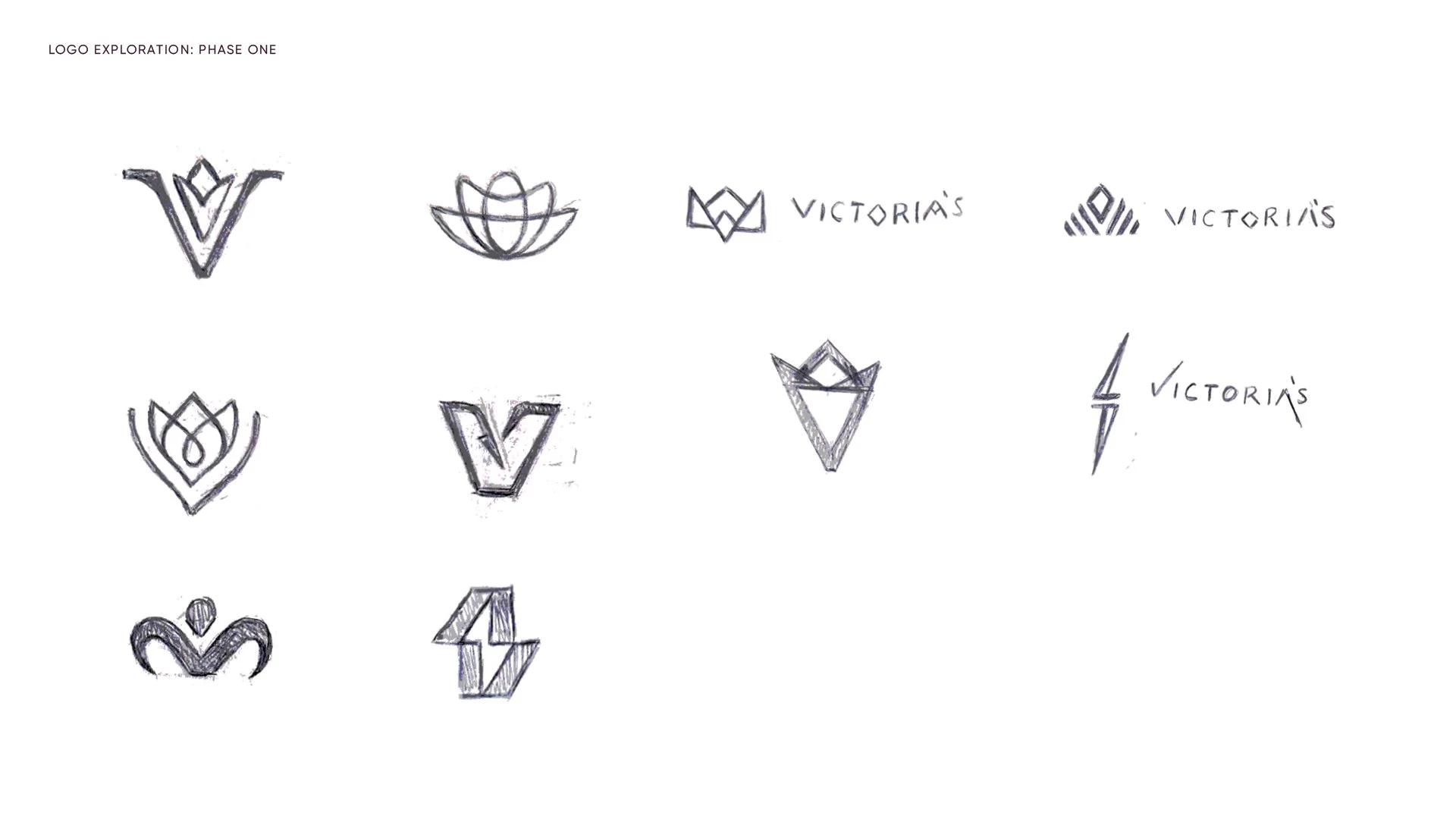 The logo development process began with sketching concepts based on three key brand phrases drawn from initial research. After refining the strongest ideas, the themes of nurturing inner strength and valuing authenticity were combined to create the idea of nurturing inner authenticity. This direction led to further exploration through refined sketches and shape development. The selected concept features a butterfly emerging from the letter V, symbolizing confidence, transformation, and a strong visual identity. In the final stage, the V shape was enhanced, the butterfly was integrated, and a custom logotype was created to mirror the symbol’s angles.